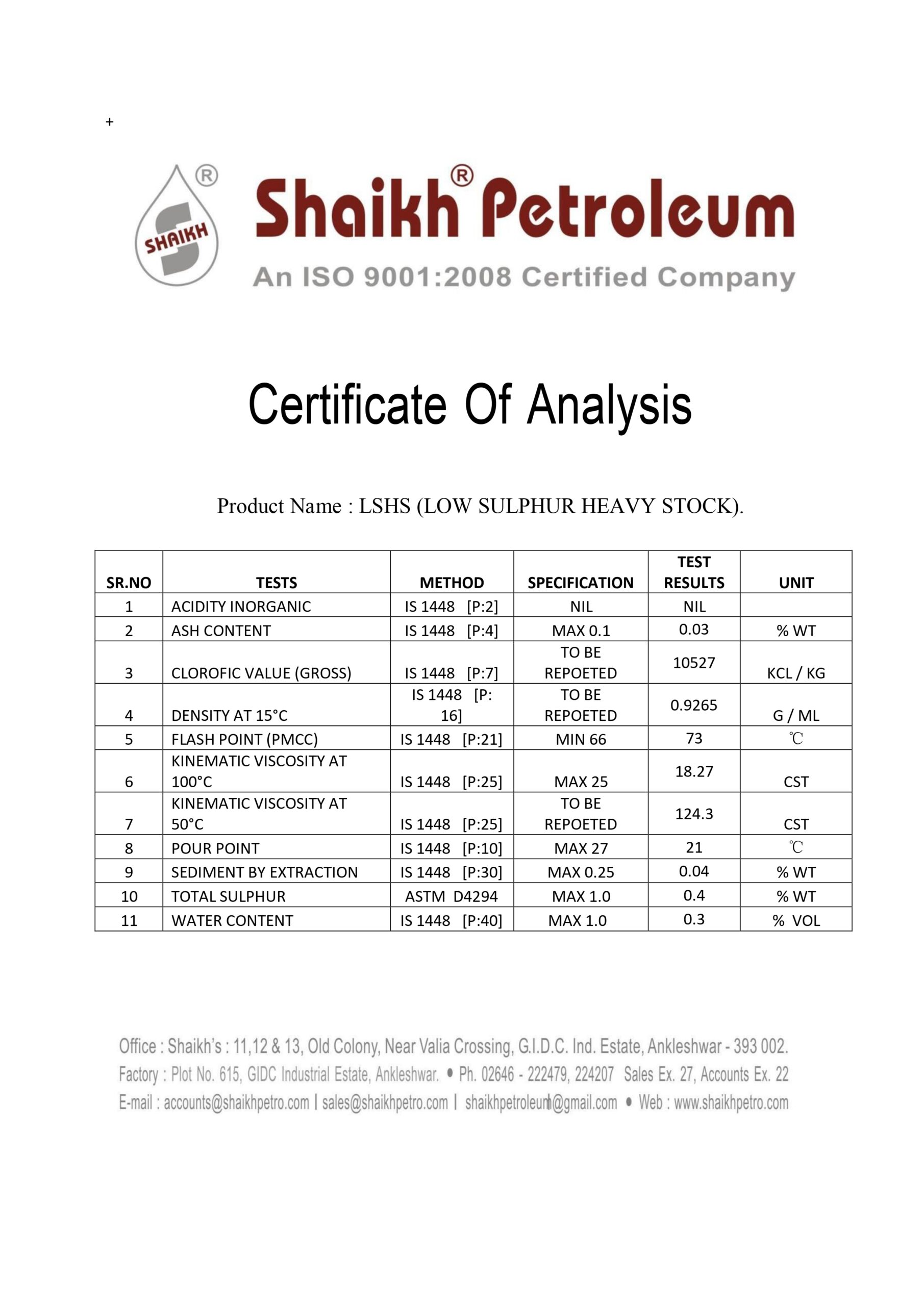 http://shaikhpetro.com/wp-content/uploads/2023/10/LSHS-COA_page-0001.jpg is used in lower RPM engines. It is used in Lift irrigation pump sets, DG Sets and as a fuel in certain boilers and furnaces.